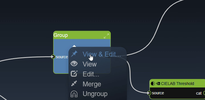 To 'View & Edit' a node, double click the node, if there are multiple outputs a menu will allow you to select which output you wish to view